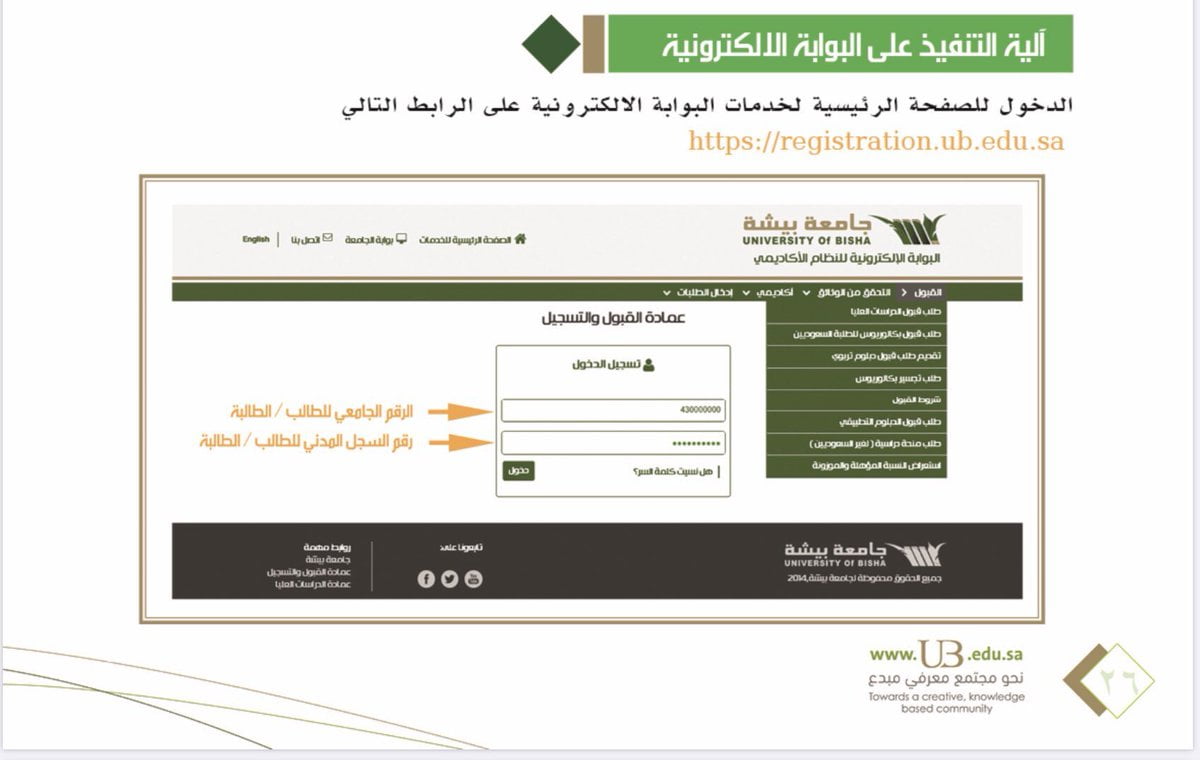الدخول الموحد على جامعة بيشة يتم باتباع الآتي: