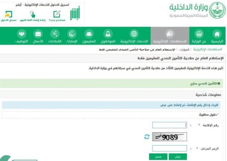 الإستعلام عن صلاحية التأمين الطبي أبشر