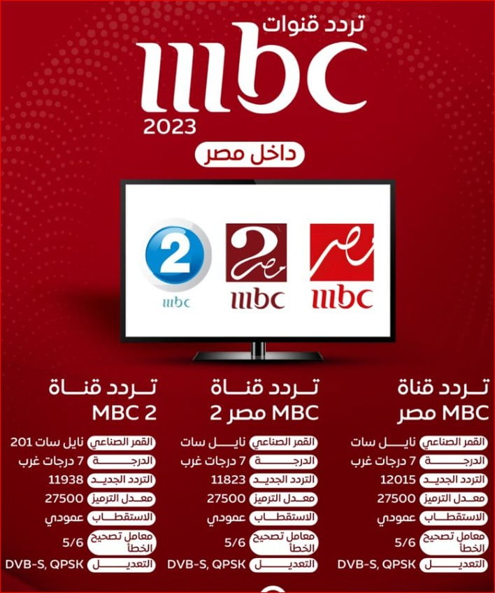- تردد قناة إم بي سي مصر MBC الجديد هو 11823 والبديل له 12015 باستقطاب رأسي.