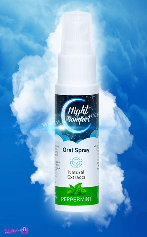 نايت كومفورت Night Comfort هو بخاخ لعلاج الشخير طويل المفعول متوفر بالصيدليات وهو آمن تمامًا، حيث يحتوي على مكونات طبيعية، هي: