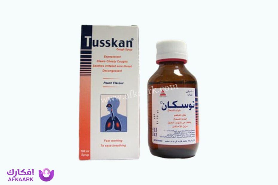 - يعتمد دواء توسكان Tusskan على عدد من المواد الكيميائية المضادة للهيستامين مثل (ديكستروميثوربان، جوافينسين، دايفينهايدرامين، افيدرين).