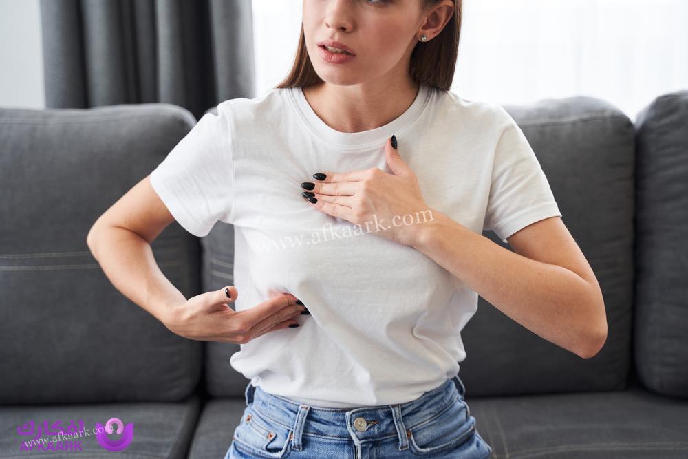 • الشعور بألم وعدم راحة بالثدي خصوصًا عند لمس منطقة الصدر.
