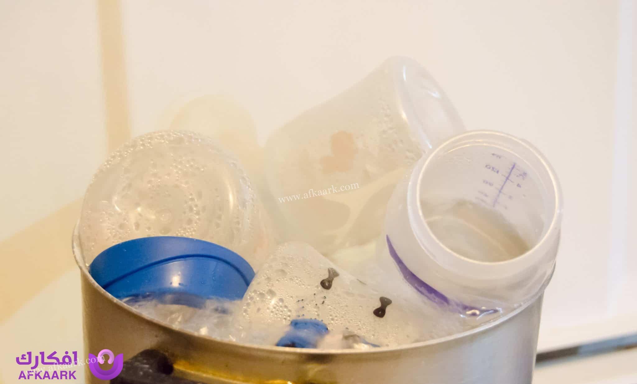 خطوات تعقيم الرضاعات البلاستيك بالماء المغلي