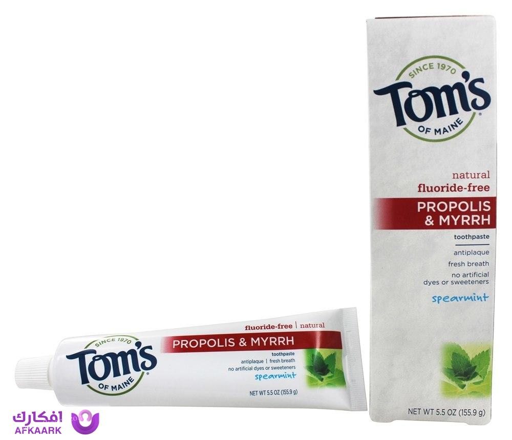 شركة تومز أوف لديها عدة إصدارات من معجون الأسنان منها الذي يحتوي على الفلورايد والخالي من الفلورايد.