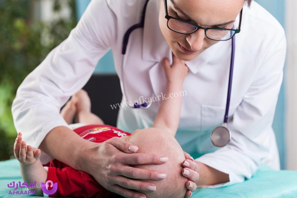 - يحاول الطبيب القيام بعملية تنويم الطفل على أحد جنبيه مع ثني ركبته إلى أسفل ذقن الطفل.