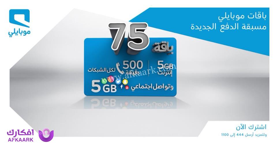 باقة موبايلي مسبقة الدفع 75
