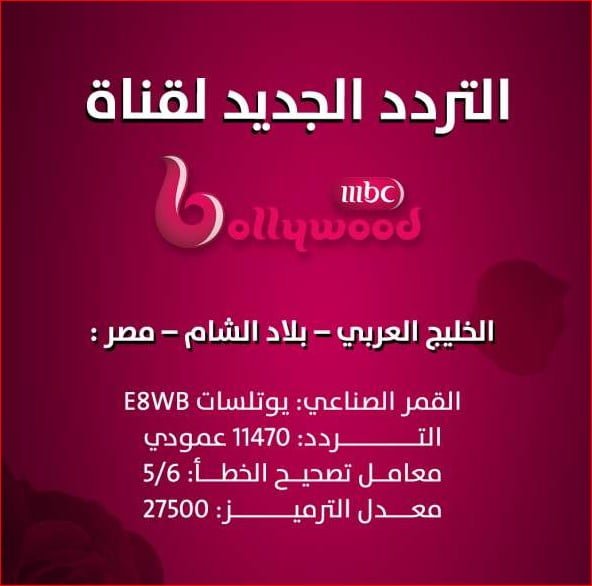 - قمر Eutelsat 7 West A: التردد 11354 – الاستقطاب أفقي – معدل الترميز 27500 – القناة FTAشاهدوا أفلام بوليوود المفضلة لديكم بدقة عالية على قناة MBC بوليوود 2023، فهي القناة العربية الأولى التي تعرض أفلام بوليوود الجديدة والكلاسيكية، بجودة عالية الدقة، وذلك على النايل سات وعرب سات HD.في هذا المقال سنتحدث بالتفصيل عن تردد قناة MBC بوليوود 2023 على النايل سات وعرب سات HD، وأيضاً سنتطرق إلى بعض المعلومات الإضافية حول القناة وما يمكن أن تقدمه لعشاق أفلام بوليوود.